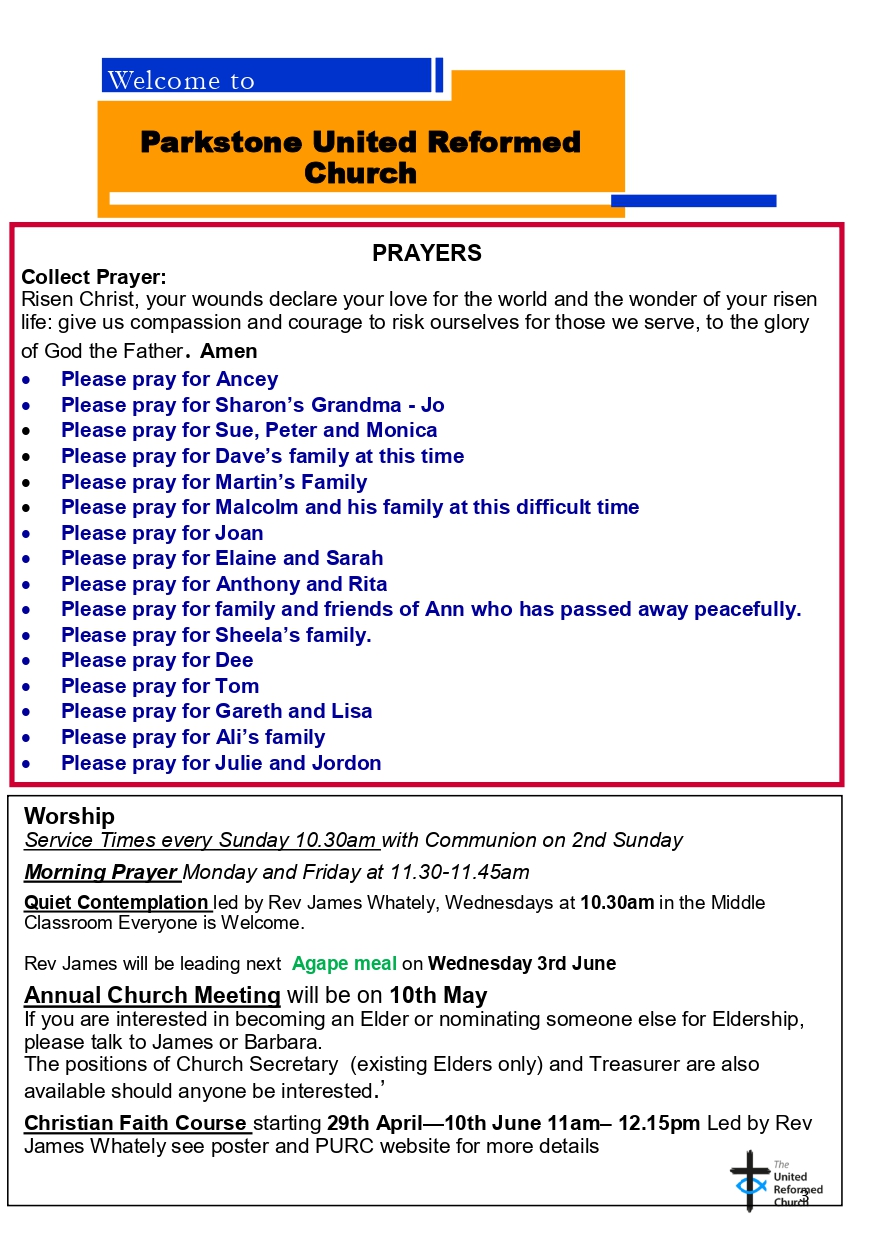 Led by Rev James Whately (Minister Parkstone URC)