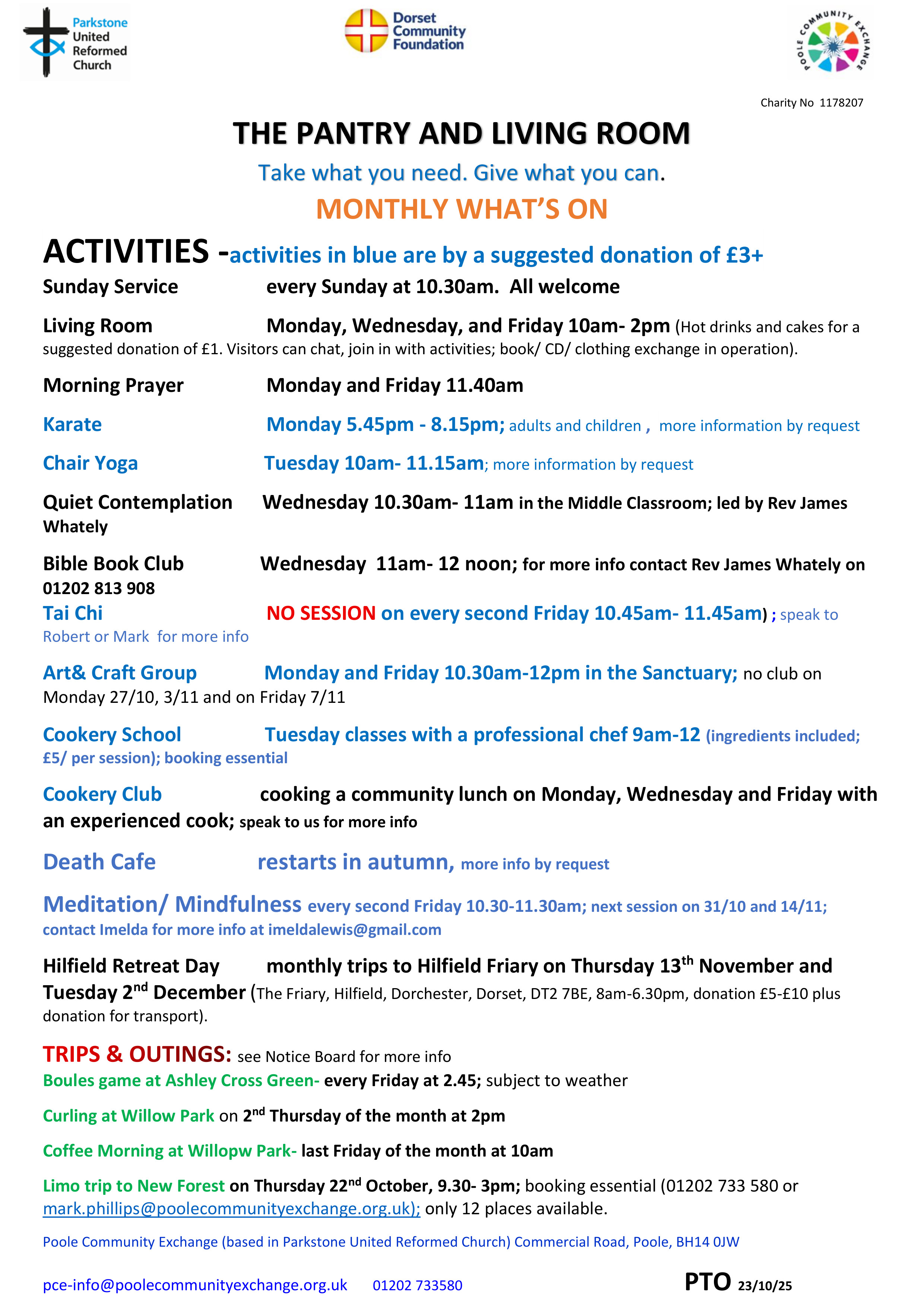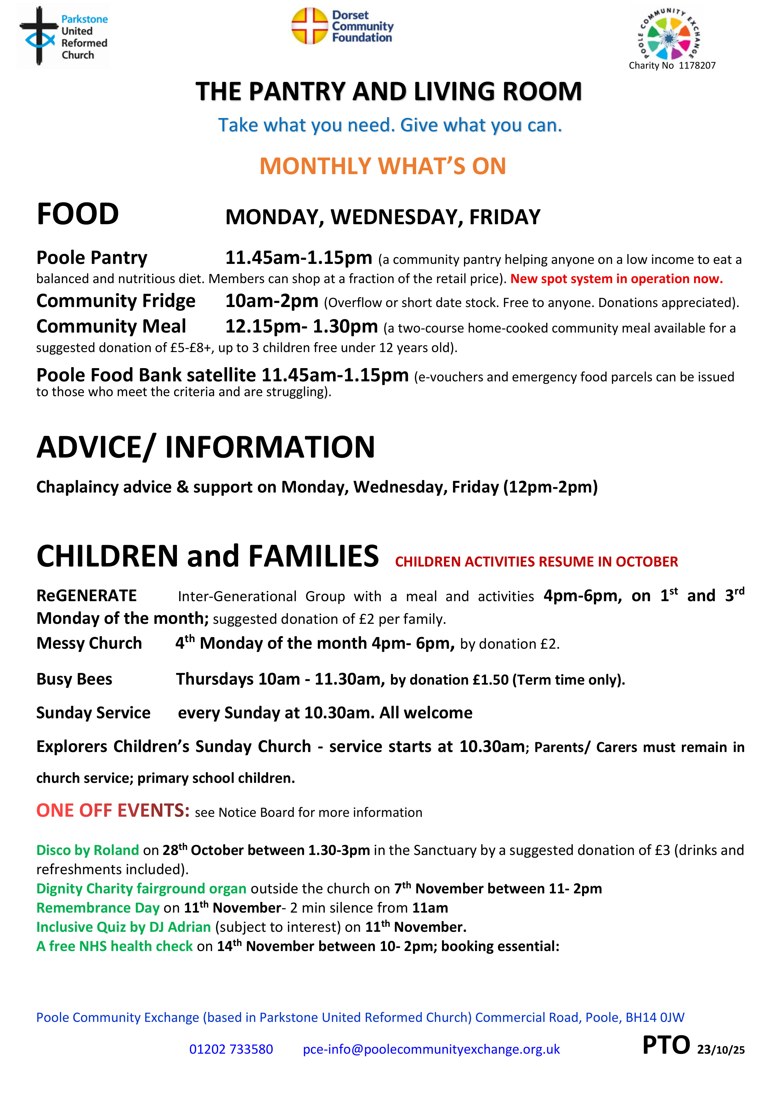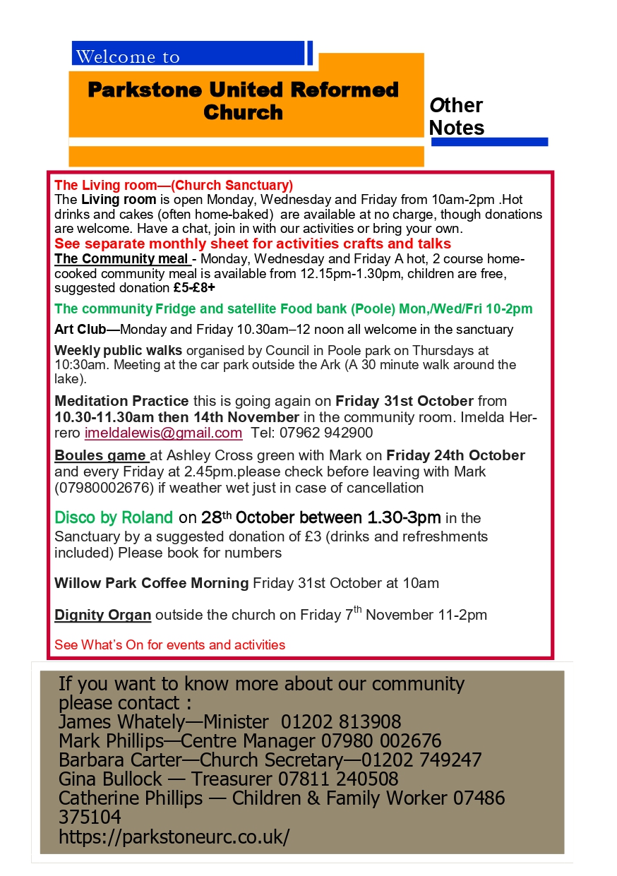 the Church as a whole.Extremely active within the Lower Parkstone and Poole area the Church is well known as a friendly meeting house and support location to many local groups and organisations – both Faith Groups and Community Groups
